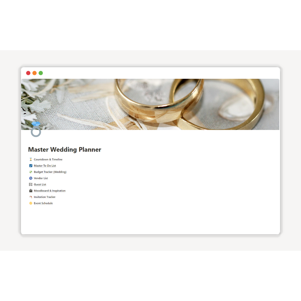 This all-in-one Notion Wedding Planner helps you stay organized, stress-free, and fully in control of every detailβ€”from engagement to β€œI do”.