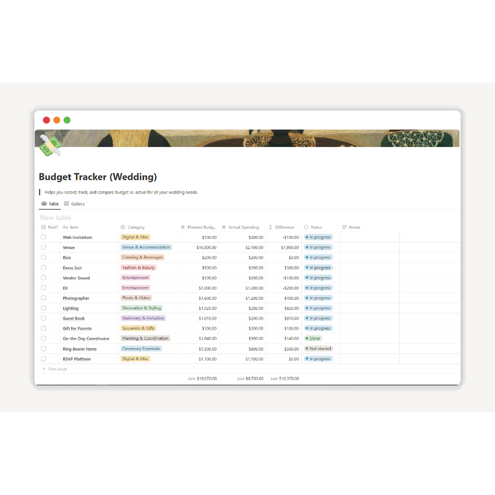 - πΈ Budget Tracker β Plan, track, and manage your wedding expenses