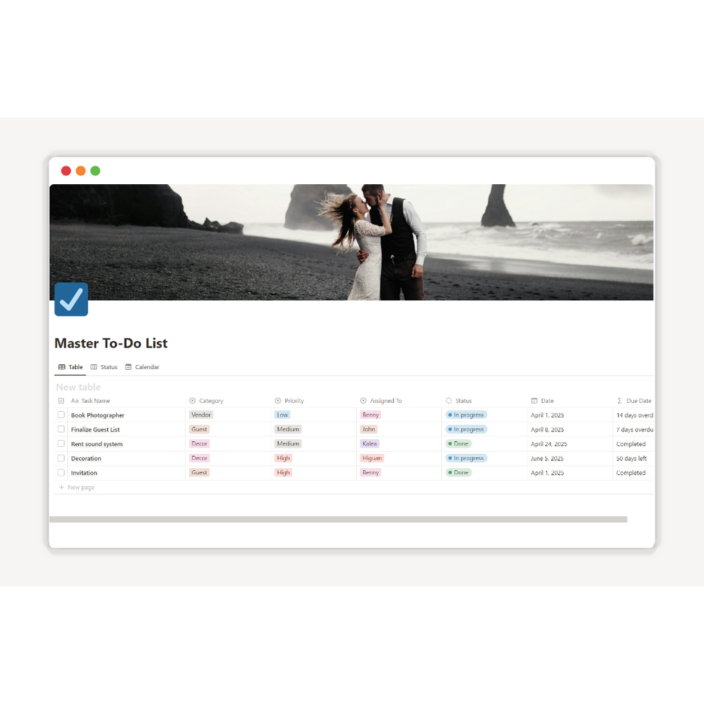 This all-in-one Notion Wedding Planner helps you stay organized, stress-free, and fully in control of every detailβfrom engagement to βI doβ.