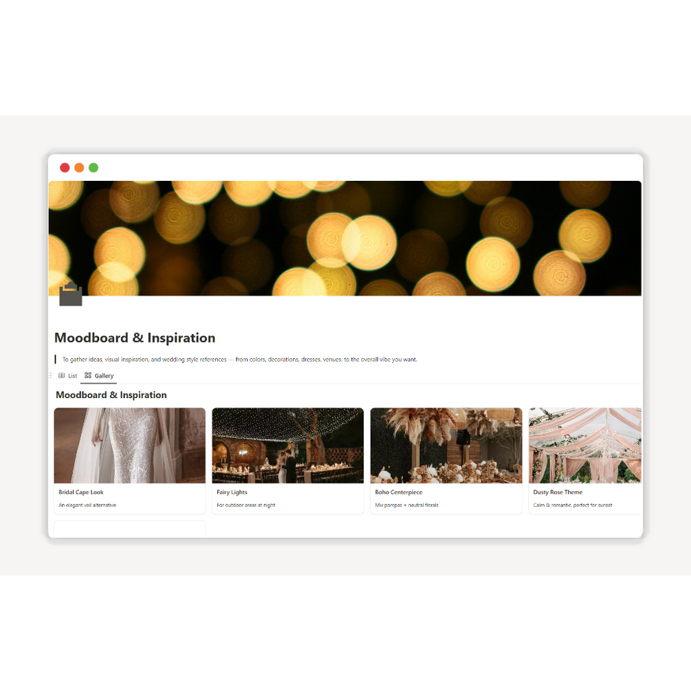 - πΌ Moodboard & Inspiration β Collect your wedding vision & ideas