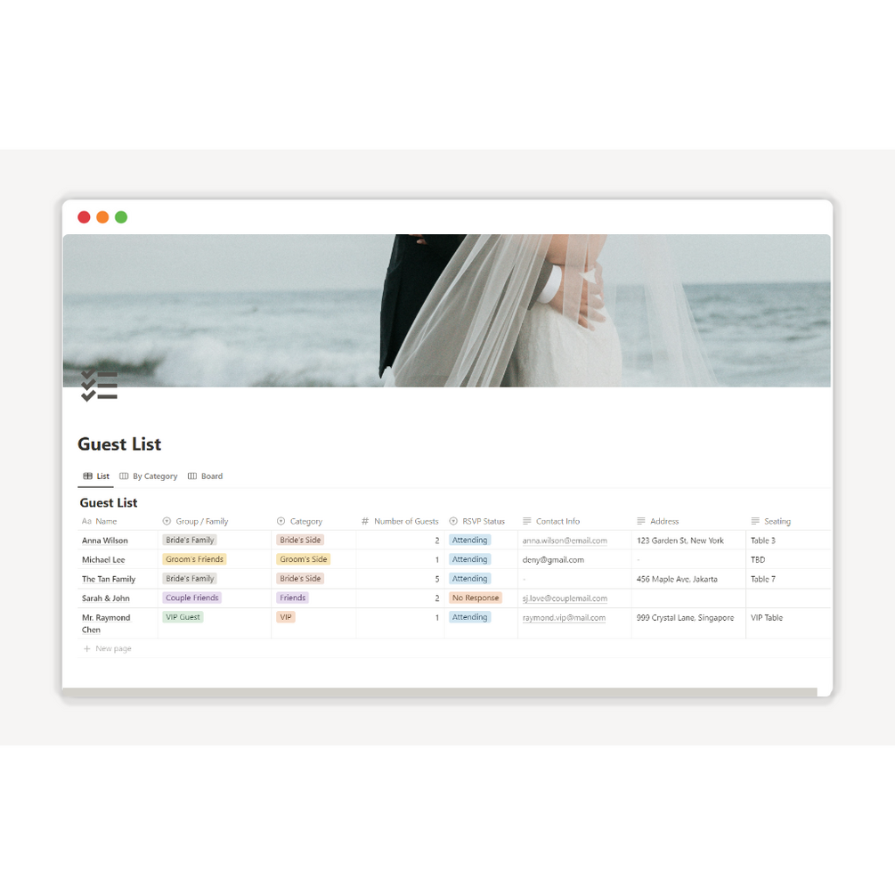 - π Guest List β Track RSVPs, dietary preferences, seating & more