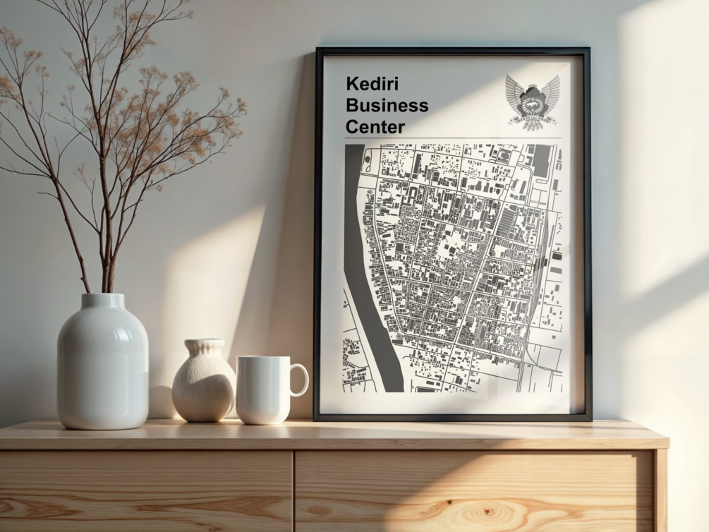 Bring a touch of modern elegance to your workspace or living area with the Kediri Business Centre – Monochrome City Map Poster. Designed in a clean, minimalistic black-and-white style, this poster captures the heart of Kediri’s business district with precise lines and refined urban aesthetics.