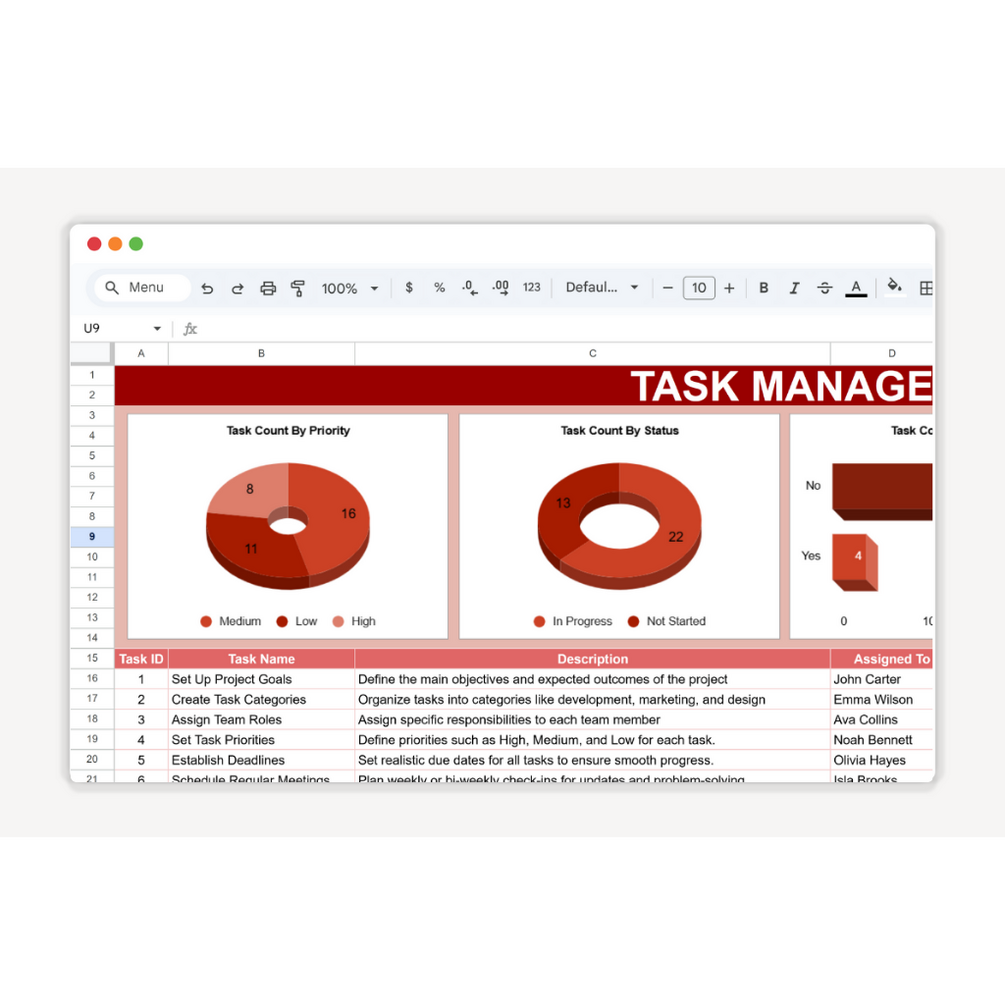 The Spreadsheet Task Management system is a structured and organized way to track, assign, and manage tasks using spreadsheet applications like Google Sheets. This system allows users to create task lists, set deadlines, assign responsibilities, track progress, and prioritize work efficiently.