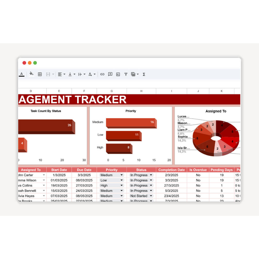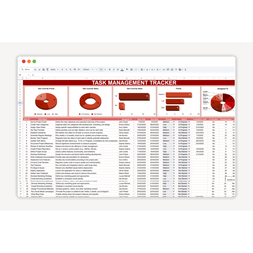 - Status Tracking: A progress column to mark tasks as "Pending," "In Progress," or "Completed."